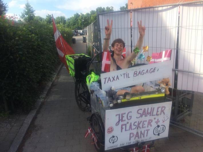 Han var kommet til Jelling Musikfestival for at samle flasker, men hjalp også folk med tunge tasker og lift i ladet på sin cykel – betalingen var relativt underordnet, og det siger ikke så lidt, når det kommer fra en mand som kan have samtlige sine ejendele på ladet af sin cykel.