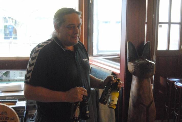 Karl Maynard fremviser en lille brøkdel af The Cat & Barrels øl-udvalg. Foto: Privatfoto