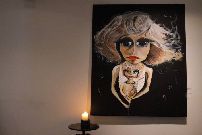 Flere af Anne Dittes malerier hænger til udstilling i kaffebaren BRYG, men det er også muligt at følge med på www.Anneditte.dk