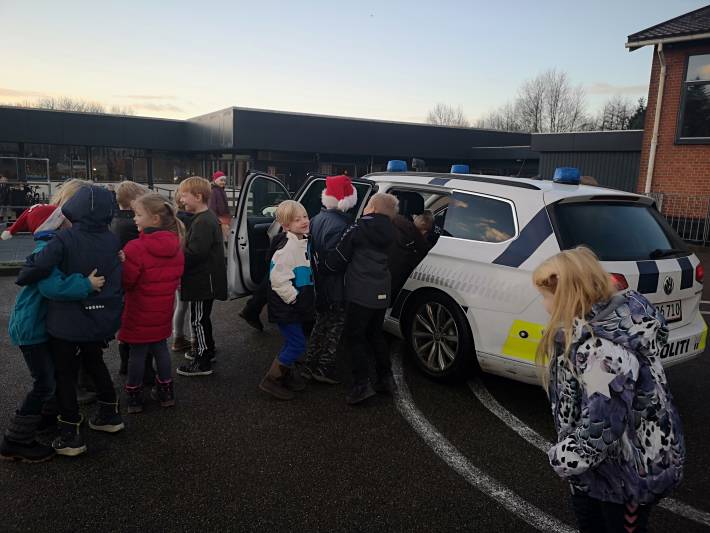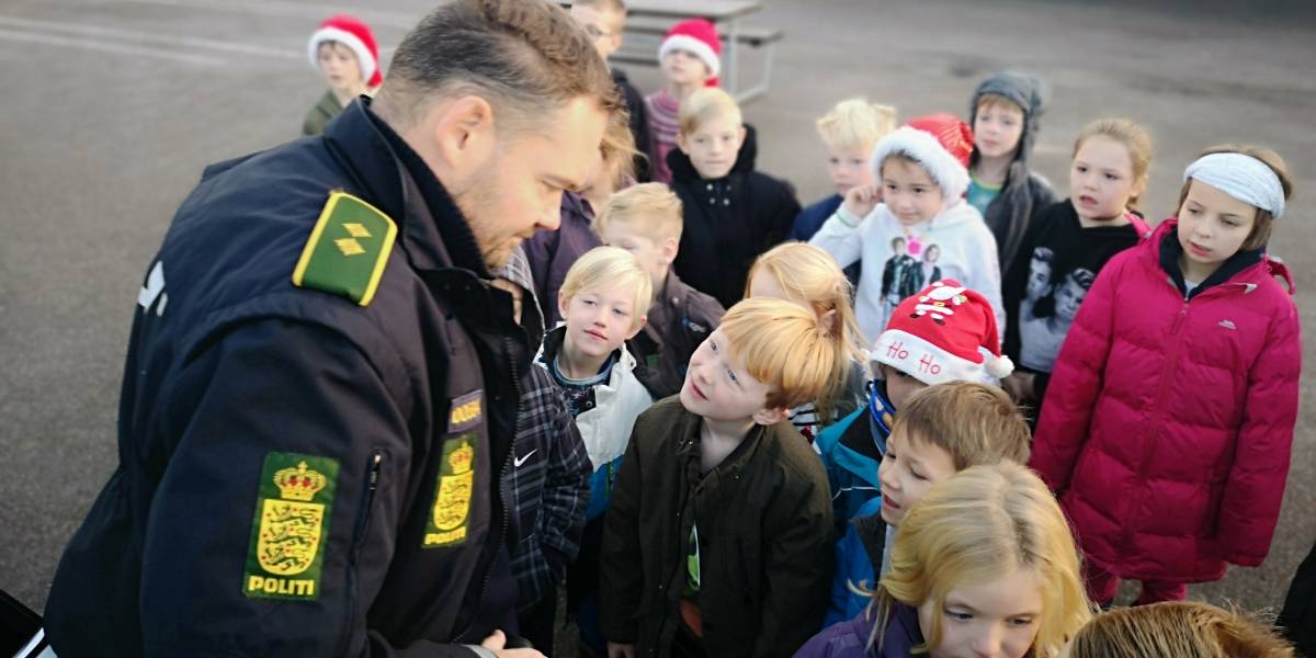 Så kunne børnene ellers få lov til at røre og blive låst fast til et ægte håndjern, stille alle deres mange spørgsmål om en politibetjents arbejde – og se nærmere på den patruljevogn, der var kørt helt ind i skolegården.