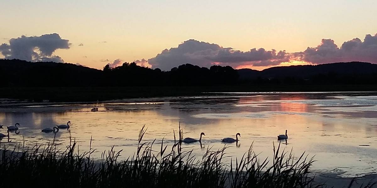 Stemmerne er talt op. Birthe Olsens fotografi af svømmende svaner i det maleriske skær i Kongens Kær er blevet kåret til ugens bedste fotografi.