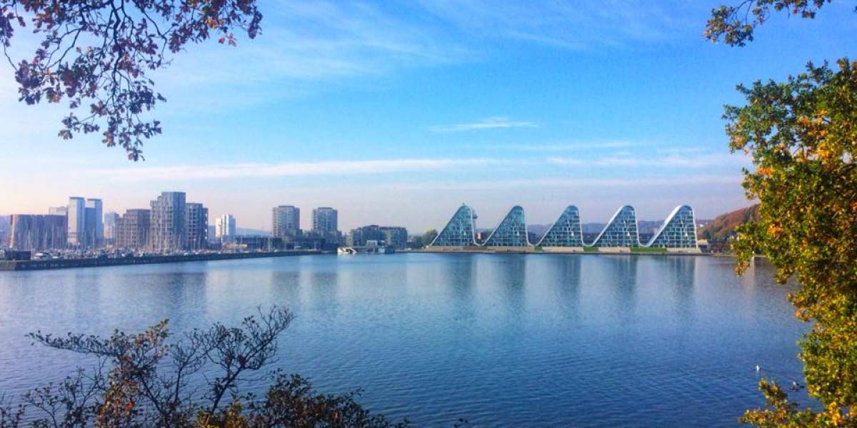 Vejles havnefront set fra Skyttehushaven i Den Blå Time. Det var motivet, som I har kåret til ugens bedste billede. Fotografen er Mette Bruus.